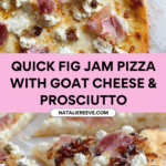 A quick and delicious 20-minute fig jam pizza topped with creamy goat cheese, savory prosciutto, and melted mozzarella on a crispy thin crust. This gourmet-style pizza combines sweet and salty flavors, perfect for an easy gourmet meal or entertaining guests.