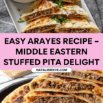 Keywords: Arayes, stuffed pita, Middle Eastern recipe, ground beef pita, grilled pita pockets, baharat spiced meat, sumac, tahini sauce, easy Middle Eastern dish