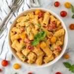 Store leftover pasta in an airtight container in the refrigerator for up to 3 days. Reheat gently in a microwave or on the stove with a splash of water or olive oil to loosen the sauce. This dish is best enjoyed fresh but reheats well.