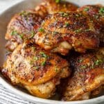 Crispy and flavorful baked chicken thighs seasoned with a blend of paprika, garlic powder, and herbs, cooked to juicy perfection in the oven and finished under the broiler for extra crispy skin.