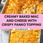 This classic Baked Mac and Cheese recipe features creamy cheese sauce made from sharp cheddar and Parmesan cheeses, thickened with a buttery roux, combined with perfectly cooked elbow macaroni, and topped with a crunchy, buttery Panko breadcrumb crust. Baked to golden perfection, this comforting, cheesy pasta dish is ideal for family dinners or gatherings.