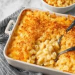 This classic Baked Mac and Cheese recipe features creamy cheese sauce made from sharp cheddar and Parmesan cheeses, thickened with a buttery roux, combined with perfectly cooked elbow macaroni, and topped with a crunchy, buttery Panko breadcrumb crust. Baked to golden perfection, this comforting, cheesy pasta dish is ideal for family dinners or gatherings.
