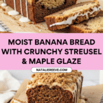 Keywords: banana bread, streusel topping, maple glaze, cinnamon, pecans, homemade bread, breakfast bread