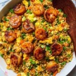 - Garnish and Serve: Remove from heat, garnish with sliced green onions, and serve the Bang Bang Fried Rice hot for the best flavor experience.