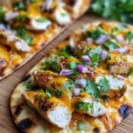 - Garnish and Serve: Remove the flatbreads from the oven. Sprinkle chopped fresh cilantro over the top for added freshness and flavor. Slice each flatbread into pieces and serve immediately while warm and melty.