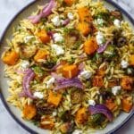 This Best Fall Harvest Orzo Salad is a vibrant and healthy dish perfect for autumn. It features roasted butternut squash, shaved Brussels sprouts, and sweet red onions tossed with tender cooked orzo pasta and a rich maple balsamic vinaigrette. Finished with creamy crumbled goat cheese, this salad offers a delightful balance of flavors and textures, making it an ideal side or light meal for fall gatherings.