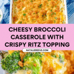 Keywords: broccoli casserole, cheesy broccoli casserole, Ritz crackers topping, Velveeta recipe, easy broccoli side dish, baked broccoli casserole