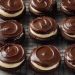 - Top cookies with ganache: Spoon a small amount of the melted chocolate ganache over each peanut butter center, covering the filling completely.