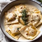 Keywords: butternut squash ravioli, rosemary cream sauce, Italian dinner, creamy pasta, autumn recipe, vegetarian pasta, easy gourmet dinner