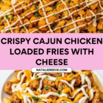 Keywords: Cajun chicken fries, loaded fries recipe, spicy chicken fries, cheese fries, easy game day snacks, baked loaded fries