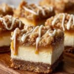 Delight in these Caramel Apple Cheesecake Bars featuring a crisp graham cracker crust, spiced sautéed apples layered over creamy cheesecake, and a buttery streusel topping, all finished with a luscious caramel drizzle. Perfectly balanced with warm autumn flavors, these bars make an irresistible dessert for any occasion.