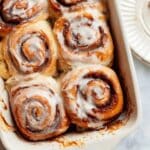 Store leftover cinnamon rolls in an airtight container at room temperature for up to 2 days. For longer storage, refrigerate for up to 5 days or freeze for up to 3 months. Reheat gently in the microwave or oven to restore softness.