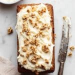 - Garnish and Serve: Sprinkle the chopped walnuts over the frosting as a garnish. Slice the loaf and serve your delicious carrot cake.