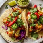These flavorful cauliflower tacos are a delicious vegetarian alternative to traditional tacos, featuring roasted cauliflower florets seasoned with smoky and spicy spices, served with fresh avocado, crunchy red cabbage, cilantro, and a squeeze of lime. Perfectly crispy on the edges and tender inside, these tacos are easy to make and ideal for a quick weeknight dinner or casual gathering.