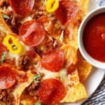 Experience the bold flavors of Chicago’s Italian Nachos with this easy copycat recipe. Crispy wonton chips are layered with savory Italian sausage, spicy pepperoni, melted mozzarella and pepper jack cheeses, and tangy pepperoncini peppers. Finished with a quick bake to melt the cheese perfectly and served with marinara sauce for a delicious dipping experience.