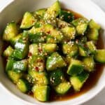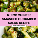 A refreshing and tangy Chinese Smashed Cucumber Salad featuring crisp cucumbers dressed in a savory soy-honey dressing with a hint of garlic, ginger, and red pepper flakes. This light and easy salad is perfect as a side dish or a quick snack.