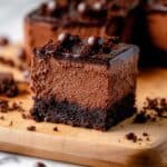 Decadent and rich Chocolate Cheesecake Bars featuring a crunchy Oreo crust, a luscious chocolate cheesecake filling, and a smooth chocolate ganache topping. These bars are perfect for chocolate lovers seeking a creamy, indulgent dessert with layers of flavor and texture.