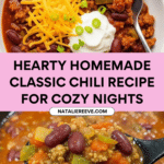 Classic chili is a hearty and flavorful dish perfect for any occasion. Loaded with ground beef, beans, and a blend of spices, it’s a comforting meal that’s easy to make and always satisfying.