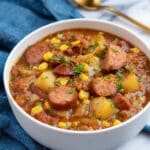 Keywords: cowboy stew, kielbasa stew, hearty stew, beef stew, bacon stew, one pot meal, comfort food