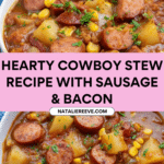 Cowboy Stew is a hearty and flavorful dish packed with smoky bacon, savory sausage, and tender ground beef. This one-pot meal combines a variety of textures and spices, making it perfect for a satisfying family dinner on chilly days.