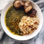 - Adjust Seasoning and Serve: Taste the molokhia soup and adjust salt or spices as needed. If you want a stronger flavor, repeat the garlic and spice sauté and add more to the soup. Serve the molokhia with the cooked Arabic rice and the tender beef cubes on the side or mixed in.