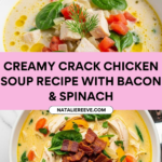 This Creamy Crack Chicken Soup is a comforting and flavorful dish perfect for chilly days. Packed with tender chicken, crispy beef bacon, and a rich blend of cheeses and spices, it’s sure to become a family favorite. Quick to prepare and wonderfully satisfying, it’s the ultimate cozy meal.