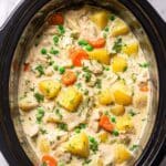 PrintCreamy Crockpot Chicken Stew with Potatoes, Carrots, and Peas Recipe