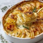 This classic Creamy Scalloped Potatoes recipe features tender Yukon gold potatoes baked in a rich garlic-Parmesan cream sauce, layered to perfection and topped with a golden, cheesy crust. Perfect as a comforting side dish for any meal, the scalloped potatoes combine buttery, cheesy, and herbaceous flavors with a velvety texture.