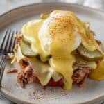 Cuban Eggs Benedict is a flavorful twist on the classic brunch favorite, featuring tender shredded pork, tangy pickles, and a zesty mustard hollandaise. This hearty dish combines savory and bright flavors for a satisfying meal that’s sure to impress.