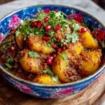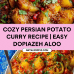 Dopiazeh Aloo is a flavorful Persian potato curry featuring tender cubed potatoes simmered in a rich, spiced tomato and caramelized onion sauce. This comforting vegetarian dish is infused with warm spices like turmeric, cumin, and coriander, making it a perfect accompaniment to Persian rice or flatbread.