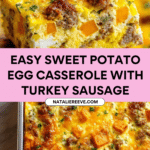Keywords: sweet potato casserole, breakfast casserole, turkey sausage, egg bake, savory casserole, easy breakfast recipe