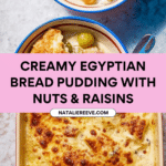 Keywords: Egyptian bread pudding, puff pastry dessert, nutty bread pudding, Middle Eastern dessert, baked pudding recipe, nut and raisin pudding