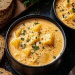 Keywords: Garlic Potato Soup, creamy potato soup, vegetarian soup, cheddar potato soup, comforting soup, easy potato soup recipe