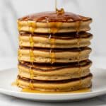6. Plate and Serve: Stack the warm pancakes on plates. Generously top each stack with a dollop of the cinnamon butter, allowing it to melt over the pancakes. Drizzle with pure maple syrup and serve immediately for the best flavor and warmth.
