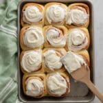 - Frost Rolls: Frost the warm (not hot) cinnamon rolls generously before serving for best flavor and texture.