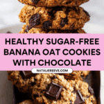 Keywords: healthy cookies, sugar-free cookies, banana cookies, oatmeal cookies, cinnamon cookies, dark chocolate cookies, guilt-free dessert, vegan cookies