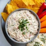 - Garnish and Chill: Add chopped green onions or parsley on top for an optional fresh garnish. Cover the bowl and chill the dip in the refrigerator for 10 to 15 minutes to allow the flavors to meld together and enhance the taste.