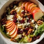 A refreshing and vibrant Honeycrisp Apple Feta Salad combining sweet crisp apples, tangy feta cheese, crunchy walnuts, and dried cranberries, dressed with a light honey apple cider vinaigrette. Perfect for a healthy lunch or a bright side dish.