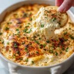 Humpty Dumpty Dip is a warm, cheesy egg-based appetizer that’s perfect for parties and gatherings. Made with hard-boiled eggs, creamy mayonnaise, sharp cheddar cheese, and crispy bacon, it’s baked to bubbly perfection and garnished with green onions and paprika for a flavorful, comforting dip served with crackers or toasted bread.