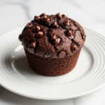 These Irresistible Double Chocolate Chip Muffins are rich, moist, and loaded with chocolate chips both inside and on top. Perfect for breakfast, a snack, or dessert, the combination of cocoa powder and chocolate chips creates a deeply chocolatey treat that’s easy to make and sure to satisfy any chocolate lover’s cravings.