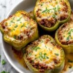 These delicious keto low carb stuffed bell peppers are a flavorful and satisfying meal perfect for anyone following a ketogenic or low-carb diet. Filled with seasoned ground beef, cauliflower rice, and cheese, these peppers are baked to perfection for a cheesy, hearty main dish that’s both nutritious and easy to prepare.