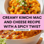 Keywords: Kimchi mac and cheese, Korean fusion, cheesy pasta, baked mac and cheese, spicy mac and cheese, comfort food