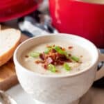 - Garnish and Serve: Ladle the soup into bowls and garnish with crumbled crispy bacon and chopped scallions. Serve immediately.