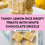 Keywords: Lemon Rice Krispy Treats, Lemon Marshmallow Treats, White Chocolate Rice Krispies, Citrus Snacks, Lemon Dessert