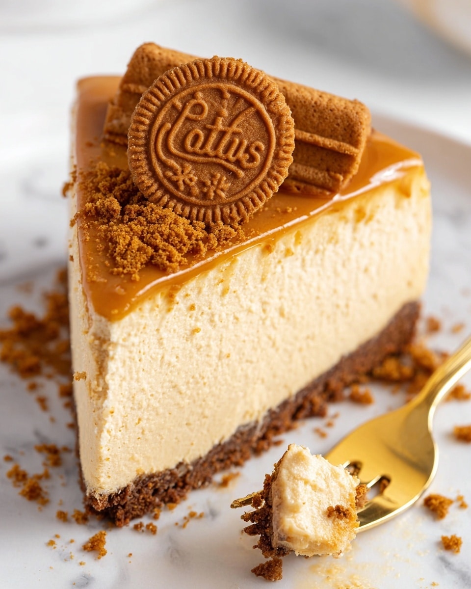 Keywords: Biscoff cheesecake, lotus biscoff dessert, cream cheese cheesecake, baked cheesecake, cookie crumb crust, water bath cheesecake
