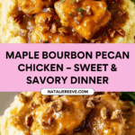 This Maple Bourbon Pecan Chicken is a flavorful dish that balances savory, sweet, and nutty elements perfectly. Tender chicken thighs are simmered in a rich maple bourbon sauce with crunchy pecans, creating a comforting meal that’s great for weeknights or special occasions.