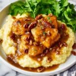 This Maple Bourbon Pecan Chicken is a flavorful dish that balances savory, sweet, and nutty elements perfectly. Tender chicken thighs are simmered in a rich maple bourbon sauce with crunchy pecans, creating a comforting meal that’s great for weeknights or special occasions.