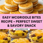 McGriddle Bites are a delicious bite-sized breakfast treat combining fluffy pancake batter with savory breakfast sausage, melted cheddar cheese, and a hint of sweet maple syrup. These mini muffins offer a perfect blend of flavors and are ideal for a quick, satisfying morning snack or meal.