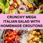 This Mega Italian Salad is a vibrant, crunchy, and flavorful dish that combines fresh romaine lettuce, juicy tomatoes, crunchy homemade croutons, tangy kalamata olives, and a zesty Parmesan-infused Italian dressing. Perfect as a light meal or a side, this salad features a harmonious blend of textures and Mediterranean-inspired tastes balanced with a simple, homemade dressing.