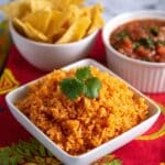 A flavorful and vibrant Mexican Rice recipe featuring perfectly browned long grain rice simmered in tomato sauce, chicken broth, and aromatic spices, finished with fresh cilantro for a classic side dish that complements any Mexican meal.